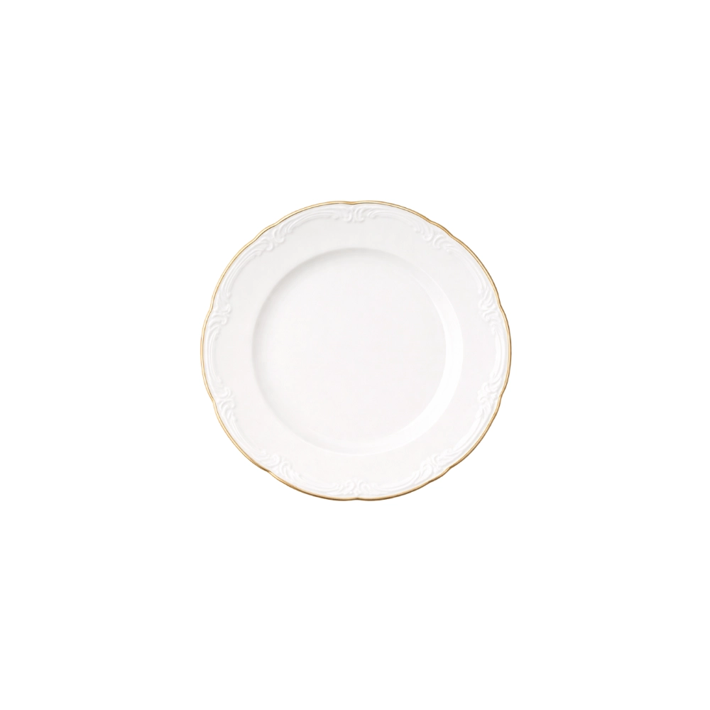 Raffinée et élégante, l’assiette dessert Rohan Filet Or apporte une touche classique et lumineuse à votre art de la table. Son relief délicat associé au filet doré souligne la finesse de la porcelaine et crée une présentation particulièrement élégante pour vos desserts.