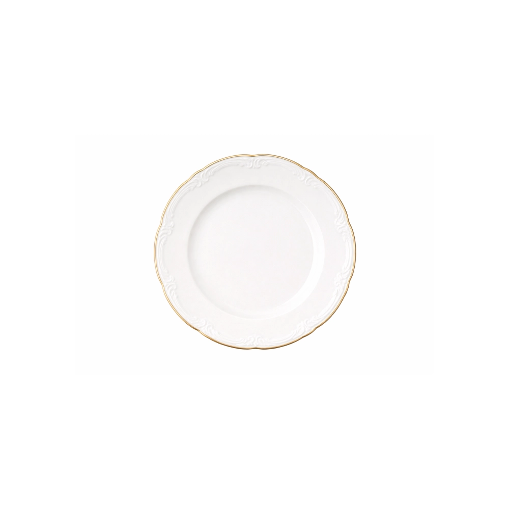 Discrète et raffinée, l’assiette à pain Rohan Filet Or complète parfaitement une table élégante. Son relief travaillé et son filet doré apportent une finition soignée et harmonieuse à votre dressage.