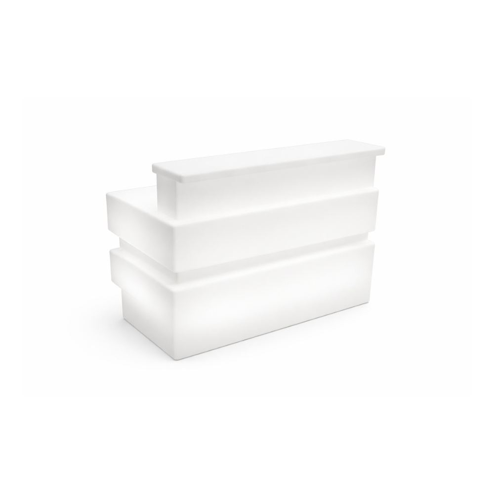 Module de bar lumineux au design contemporain, l’élément droit Bar Tétris permet de structurer facilement un espace bar élégant et visuel lors de vos événements.