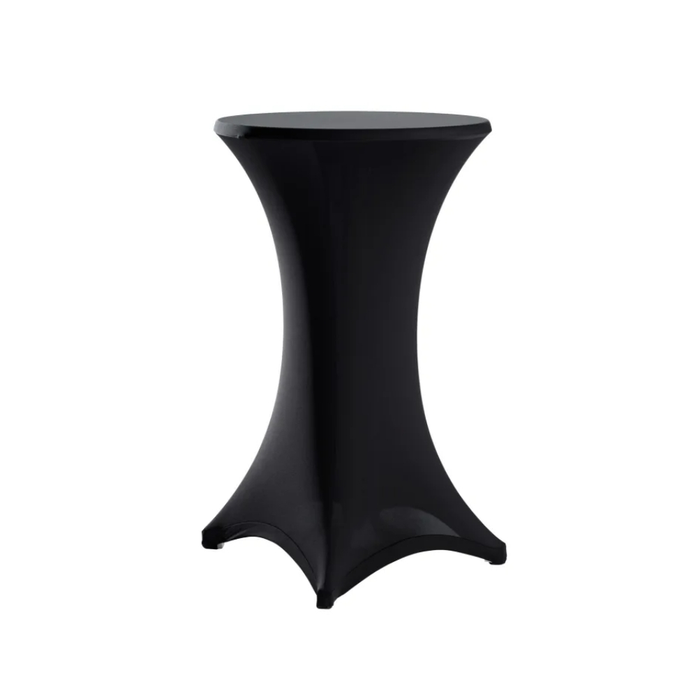 Housse de mange-debout en lycra noir idéale pour habiller élégamment vos tables hautes lors de réceptions, mariages, cocktails ou événements professionnels.